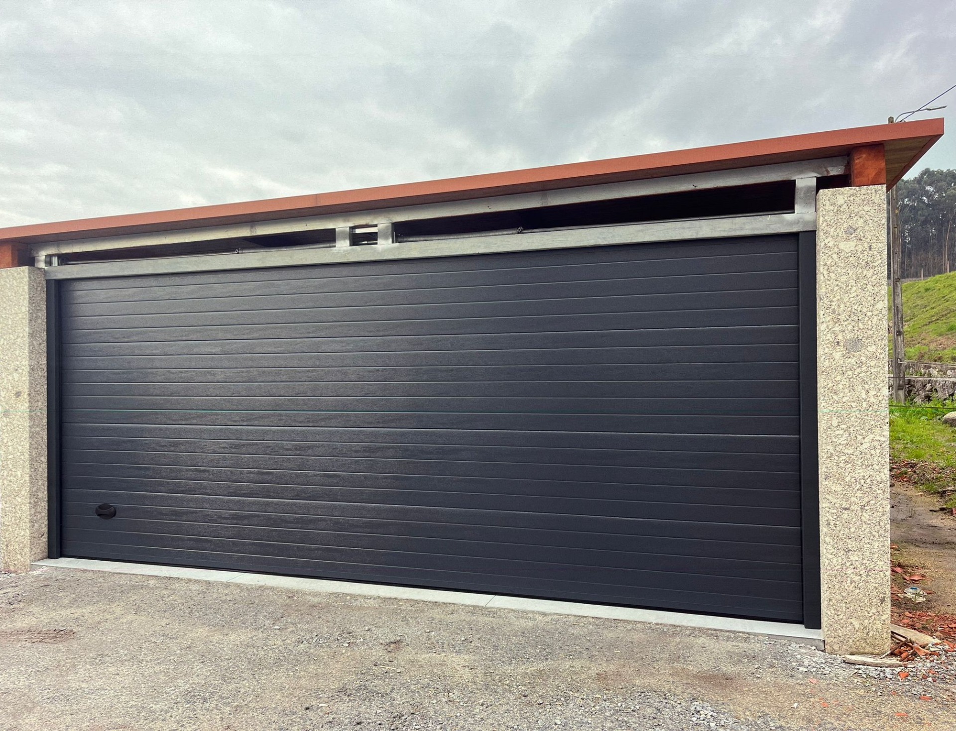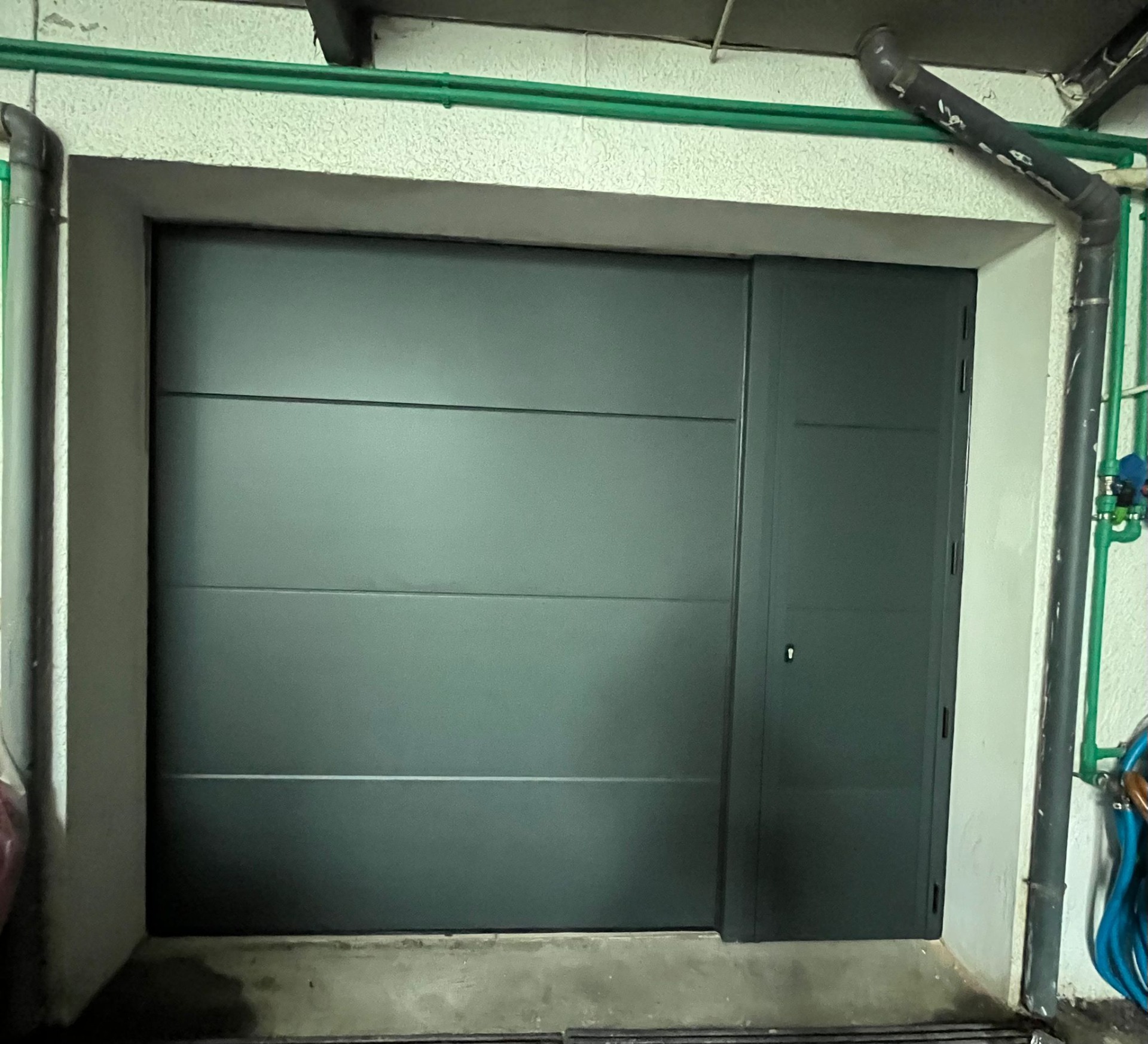 Porta Seccionada Superlisa Texturada Cinza 7016, C/Porta Anexa e Prumo.